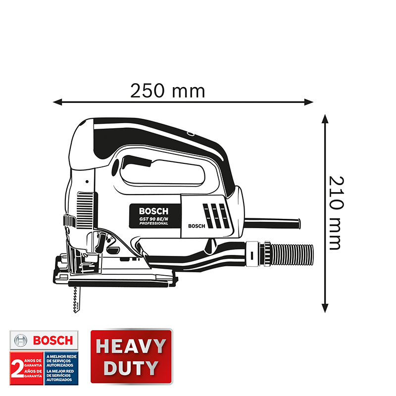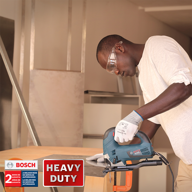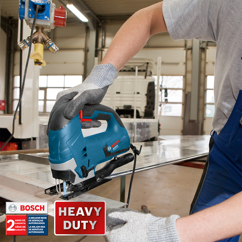 La Sierra Caladora Bosch GST 90 BE, con potencia de 650 W, es versátil y con motor de alto desempeño. Obtenga óptimos resultados en cortes rectos y curvos en diversos materiales con control de velocidad electrónico y acción pendular de 4 fases y para mayor durabilidad y estabilidad de corte, la placa base de acero antitorsión es reforzada con dos capas de acero. Cambie sus cuchillas de forma fácil y simple con el sistema SDS de cambio rápido de cuchillas y tenga más movilidad con el cable de 2,65 m. Lista para ser usada, acompaña 1 cuchilla para madera T 144 D, 1 llave hexagonal interior, protección contra recortes, kit de aspiración de polvo y maletín de transporte. Indicada para uso industrial, tiene sello Heavy Duty con 2 años de garantía.