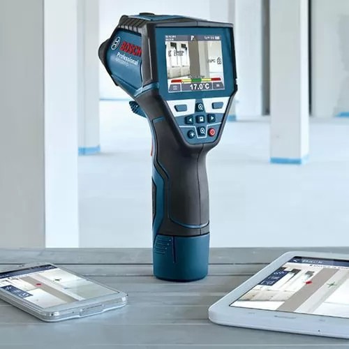 El termodetector GIS 1000 C Professional determina con precisión y documenta la temperatura superficial y las condiciones ambientales. La cámara integrada documenta en imágenes los valores determinados. Los datos también pueden transferirse directamente a un dispositivo inteligente por Bluetooth®: la aplicación gratuita Bosch Thermal permite documentarlos y compartirlos de manera sencilla. La tecnología Dual Power Source permite el uso tanto con batería de litio de 12 V como con pilas alcalinas estándar.