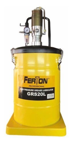 Engrasadora Neumática Ferton de 20 Litros, cuenta con tambor metálico de ruedas y manija que facilita su traslado.