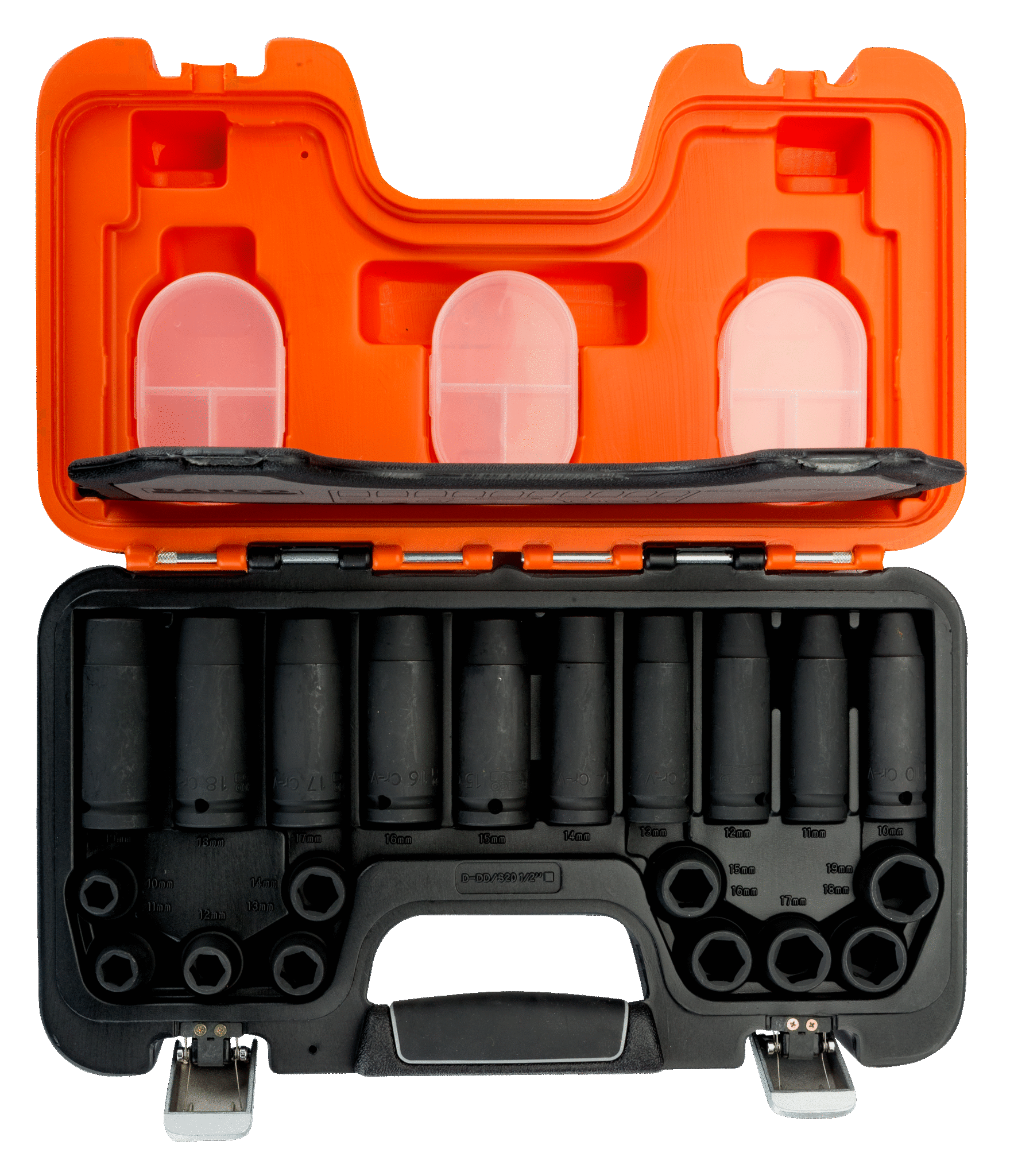 - Vasos de impacto de 1/2″ K7801M (10, 11, 12, 13, 14, 15, 16, 17, 18, 19 mm).