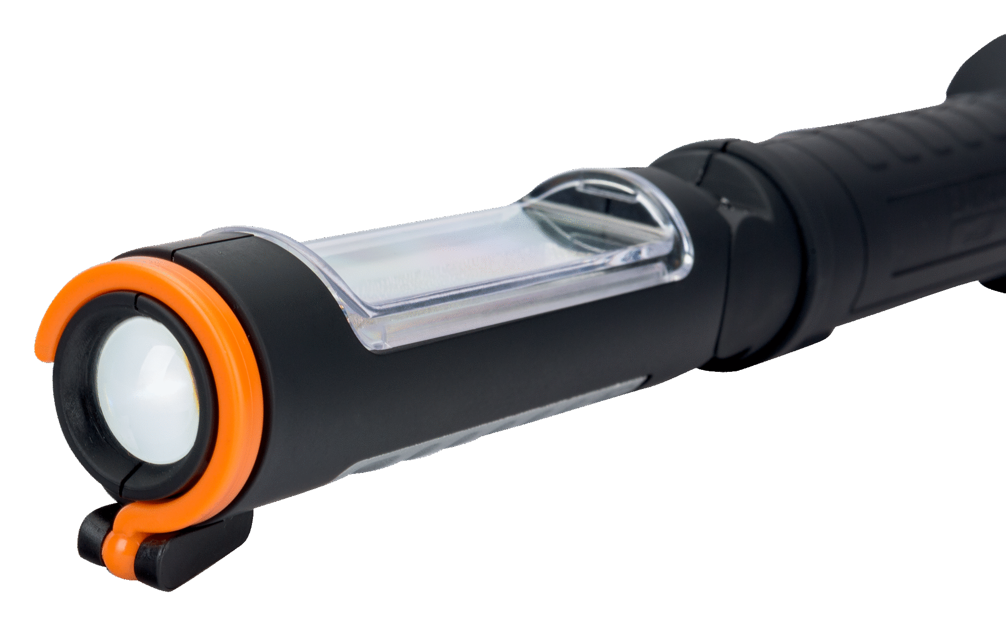- ¡Flexionar y girar! Mango flexible de 120°, cabezal giratorio de 180°