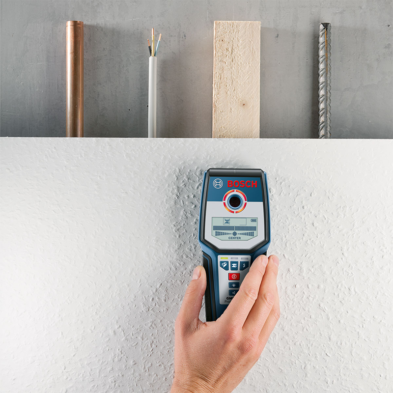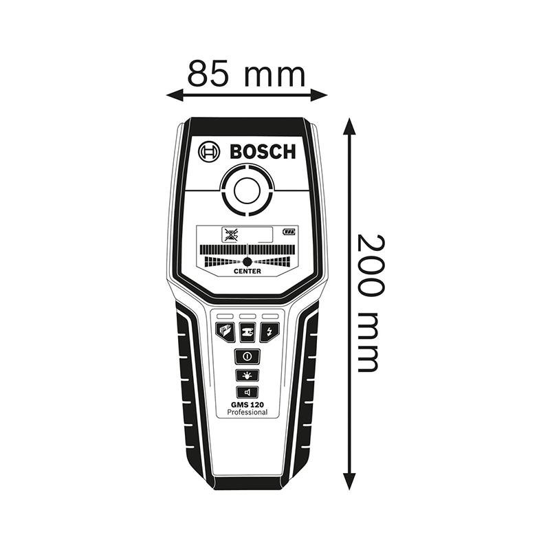 El Detector de Materiales Bosch GMS 120 fue desarrollado para detección de metales, cables energizados y estructura de madera principalmente en drywall, con él es posible detectar metales ferrosos hasta 12 cm de profundidad. Son aquellos atraídos por imanes, cono el acero, hierro fundido o laminado, varilla corrugada, etc. Detectar metales no ferrosos de hasta 8 cm de profundidad. Son aquellos no atraídos por imanes, cono el aluminio, cobre, latón, plomo, etc. Detectar cable energizado hasta 5 cm de profundidad. Son los cables cargados con corriente eléctrica, incluyendo los cables de datos. Detectar estructuras de madera hasta 3,8 cm de profundidad. Estructuras de madera en divisorias o en paredes de drywall. Con este detector usted evita perforaciones no deseadas. Reconendado para: drywall, Steel Frame y tabiques de madera.