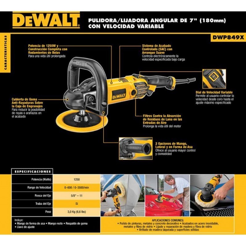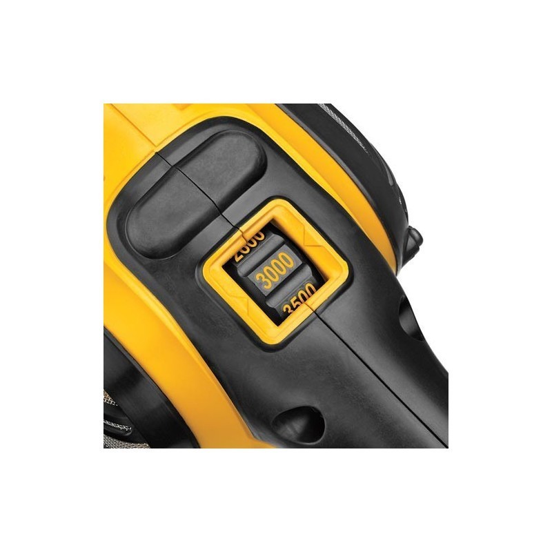 - Indicador localizado convenientemente permite al usuario cambiar la velocidad máxima de 1,000 a 3,000 RPM para diferentes materiales y aplicaciones