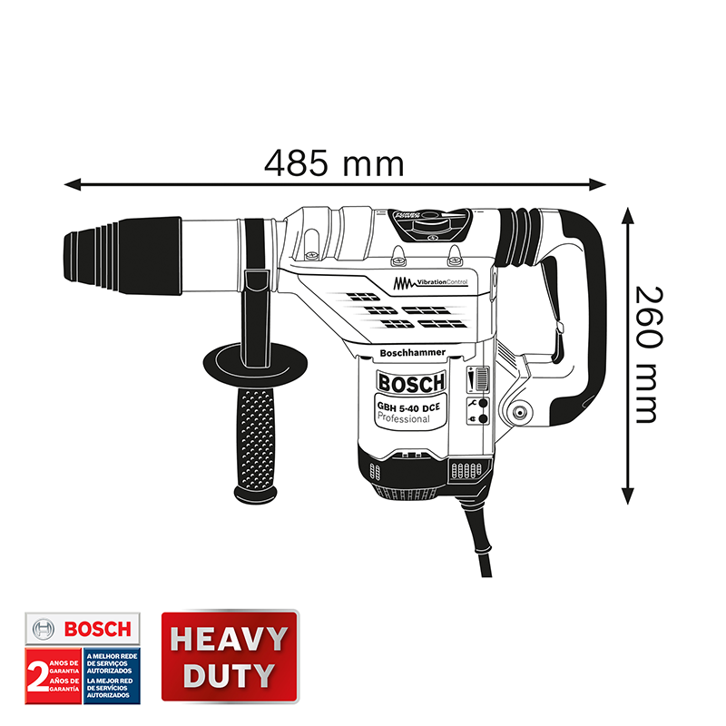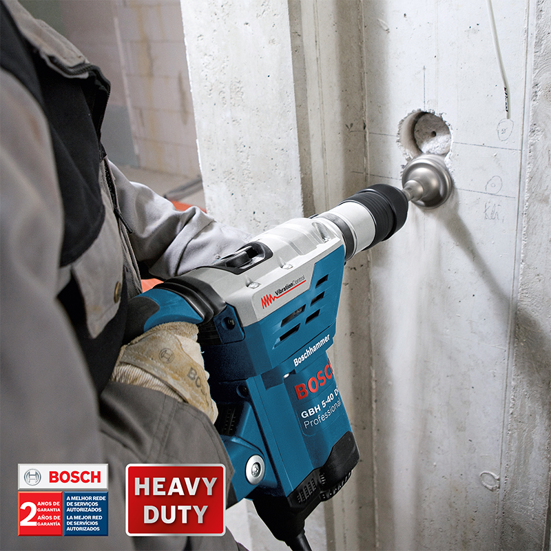 El Martillo Perforador Demoledor Bosch GBH 5-40 DCE de 5Kg es liviano y robusto para perforaciones y demoliciones prolongadas en hormigón. Tiene un motor de 1150W y una carcasa metálica para proporcionar mayor vida útil, además del mandril de cambio rápido de accesorios SDS Max Confort con solo una de las manos. Cuenta con un sistema antivibración para la comodidad y protección del operador, además del embrague de seguridad, para un trabajo más seguro.