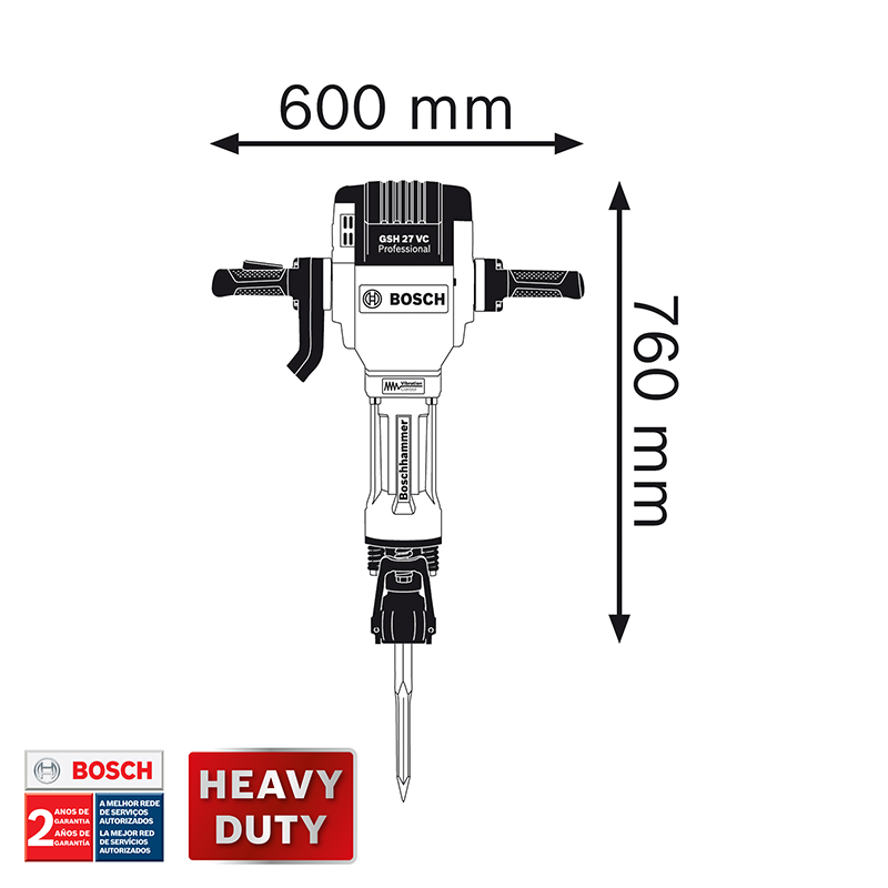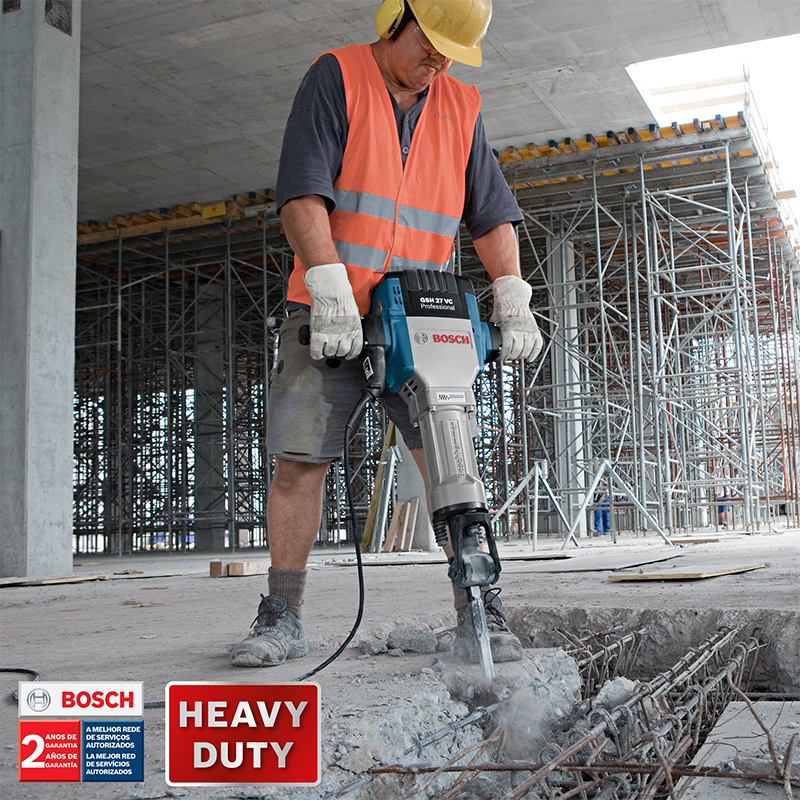 ¡El Martillo Demoledor más reconocido del mercado! El Martillo Demoledor Bosch GSH 27 VC de 27Kg viene con un potente motor de 2.000W, capaz de remover hasta 10 toneladas de hormigón por día, el doble de los principales competidores de la categoría. Su fabricación de alta calidad garantiza mayor productividad y su sistema antivibraciones proporciona un 25% menos de vibración al operador, cuando es comparado con otros martillos de la categoría.