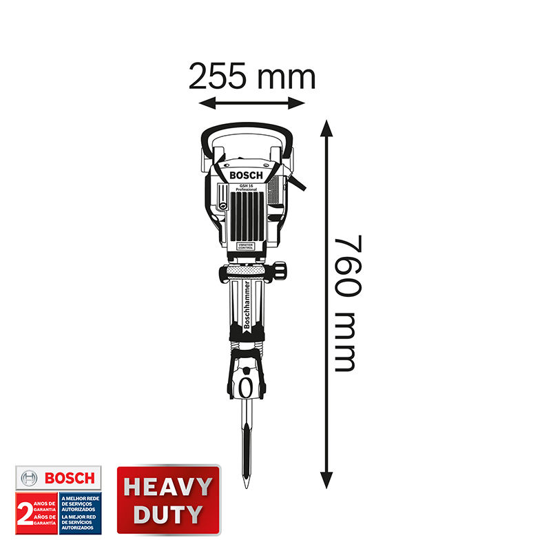 El GSH 16-28 Professional con Vibration Control y soporte para llaves hexagonales de 28 mm es el martillo demoledor a batería universal de Bosch. Su potente motor alcanza una impresionante energía de impacto de 41 J y gran rendimiento de arranque de material. El martillo demoledor es muy duradero gracias a sus robustos componentes metálicos. Además, es fácil de usar y produce pocas vibraciones para un manejo perfecto.