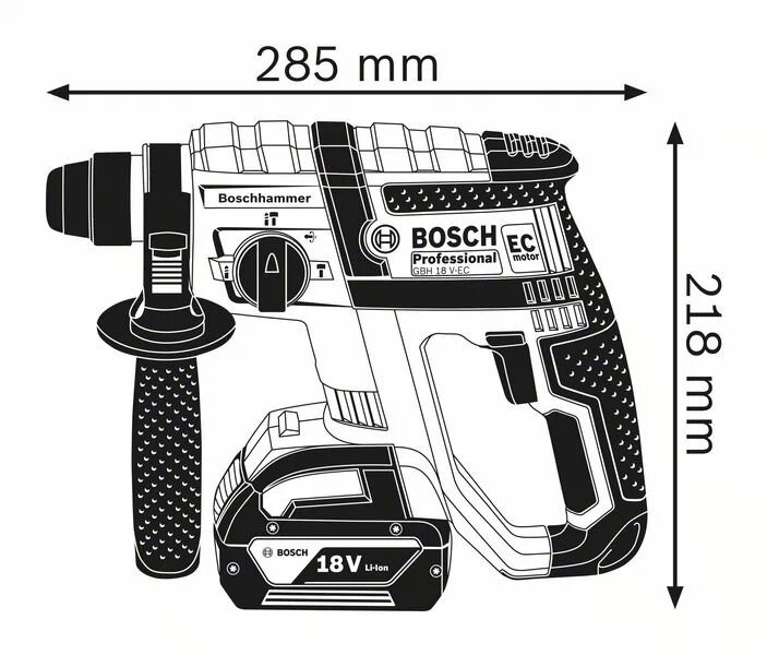 El GBH 18V-EC Professional es el martillo perforador a batería con la mejor relación potencia-peso de la gama SDS plus de 18 V de Bosch. Posee una perfecta relación potencia-peso, alcanza una energía de impacto de 1,7 J y pesa solo 2,6 kg. Su diseño ligero y compacto permite trabajar en altura, mientras que sus robustos componentes y el motor sin escobillas lo hacen muy duradero.