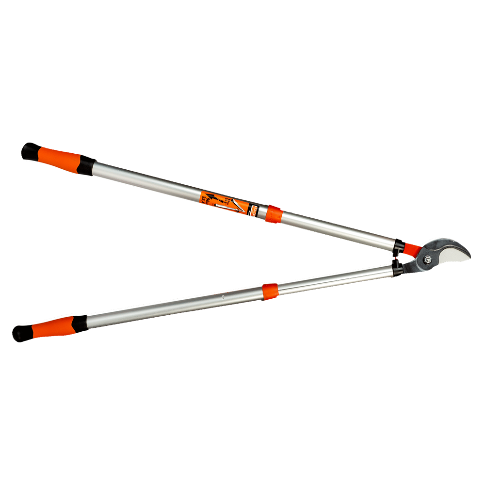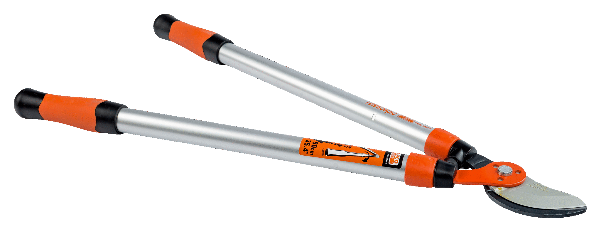 - Las Tijeras de podar de dos manos telescópicas tienen mangos fabricados con tubos de aluminio plateado que se pueden extender de 70 a 90 cm.